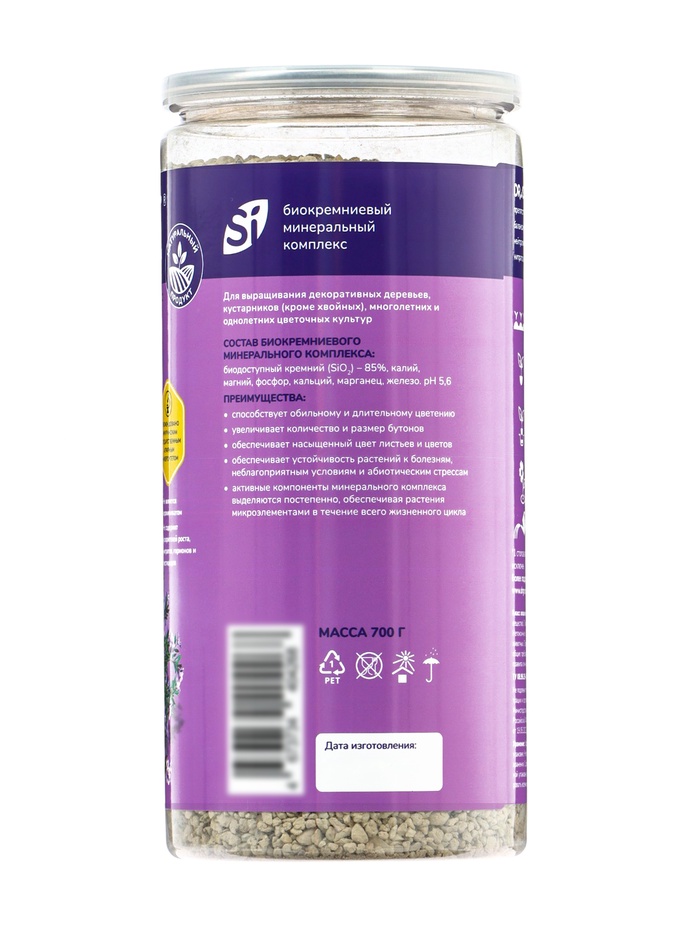 - Удобство применения на большой площади: гранулированная форма массой 700 г удобна для разового внесения под перекопку при закладке цветника или для сезонных подкормок. Гранулы легко распределить по почве, они работают постепенно.