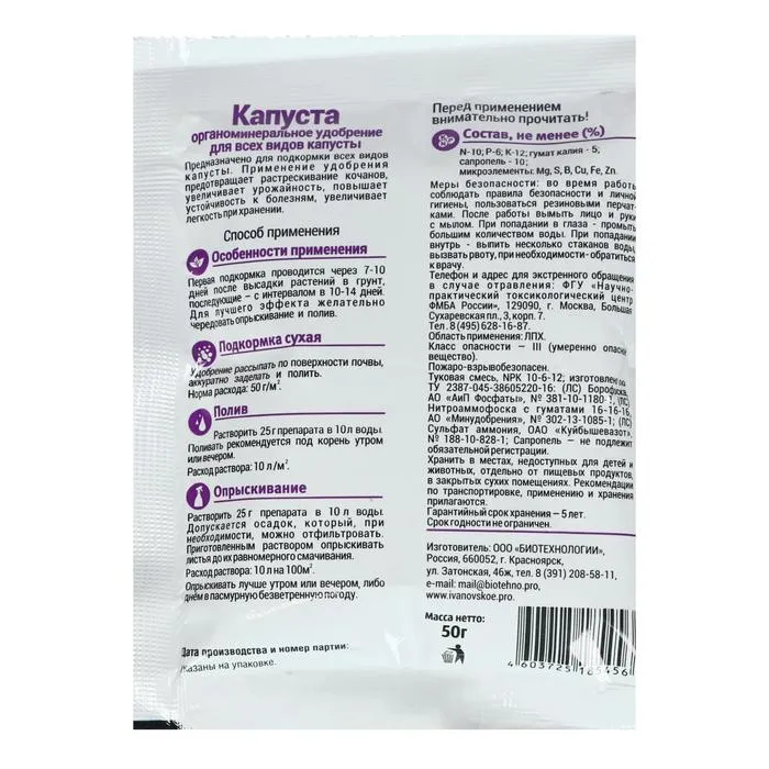 Минеральное удобрение подойдёт для подкормок всех видов капусты, включая цветную.