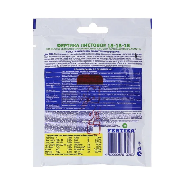 Полностью водорастворимое комплексное азотно-фосфорно-калийное удобрение, содержащее микроэлементы.