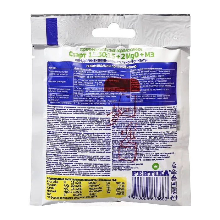 Удобрение минеральное Фертика Старт NPK 15:30:15 + МИКРО, 100 г — Характеристики