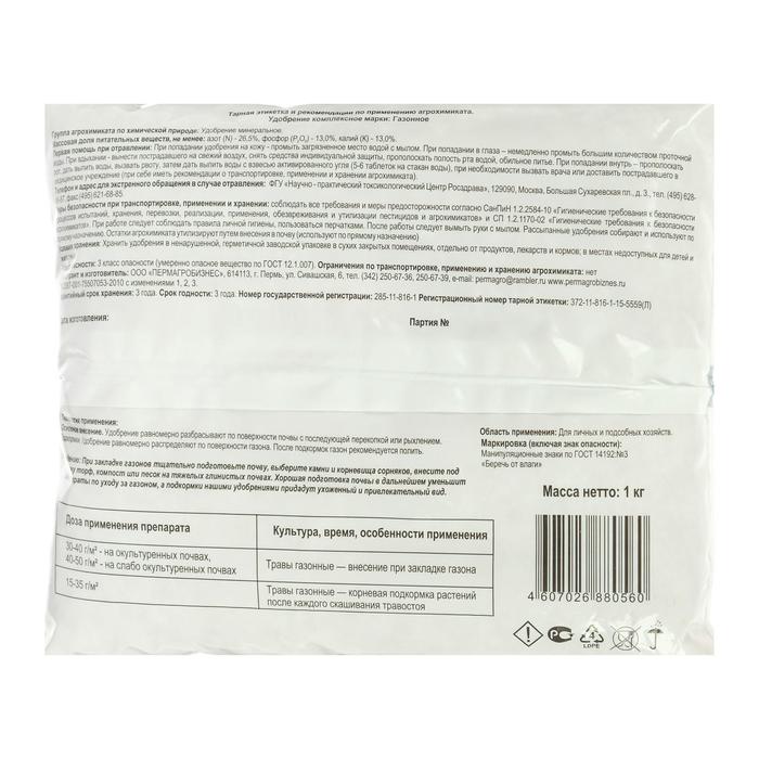 Удобрение минеральное Газонное, 1 кг — Характеристики