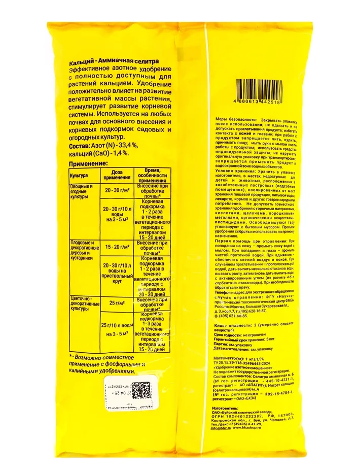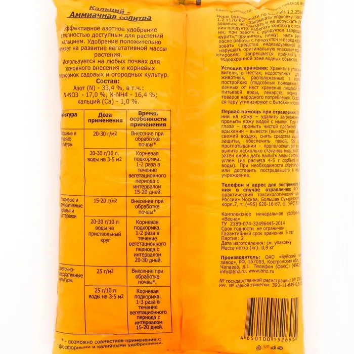 Эффективное азотное удобрение с полностью доступным для растений кальцием. Рекомендуется для различных садовых, огородных и цветочно-декоративных культур в период от начала вегетации до периода их активного роста.