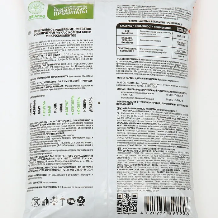 Удобрение минеральное "Классика дачника", Фосфоритная мука, 3 кг — Характеристики