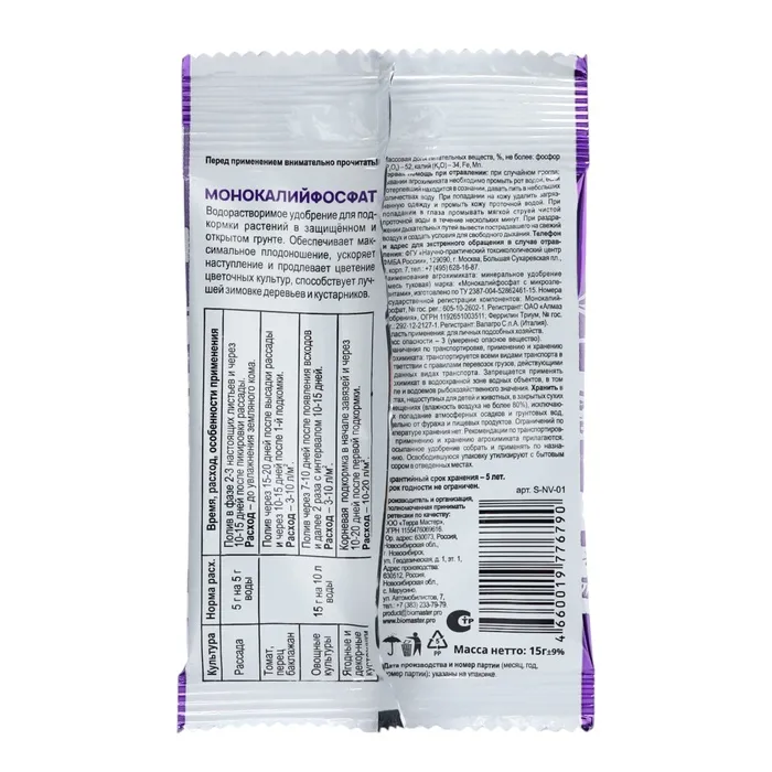 Удобрение минеральное Монокалийфосфат, 15 г — Характеристики