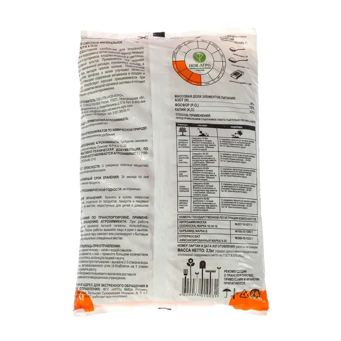 Высокоэффективное «Осеннее» комплексное удобрение с микроэлементами» специально разработано для применения на садовых, огородных и приусадебных участках в летне-осенний период. Используется для основного внесения под осеннюю перекопку и при осенней посадке луковичных культур, земляничной рассады, плодово-ягодных, а также хвойных деревьев и кустарников. Благодаря наличию комплекса микроэлементов и повышенному содержанию калия и фосфора повышает иммунитет и улучшает холодо- и морозостойкость растений.