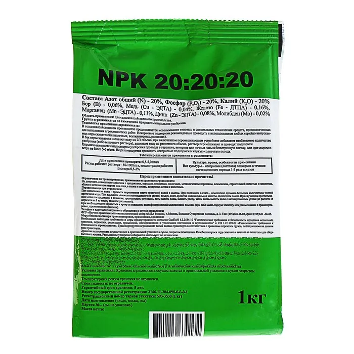 Удобрение минеральное ПЛАНТАФИД 20-20-20 NPK с микроэлементами, 1 кг — Характеристики