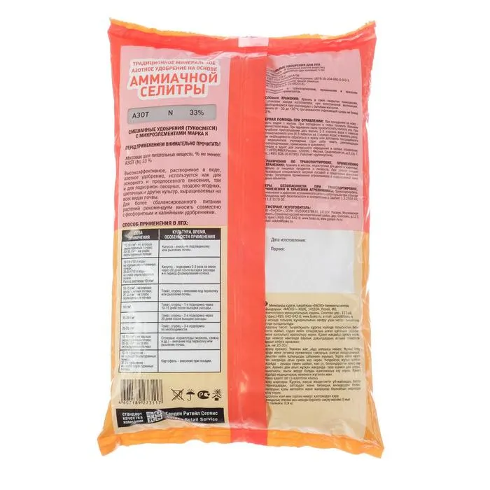 Удобрение минеральное сухое Фаско, на основе Аммиачной селитры, 0,9 кг — Характеристики