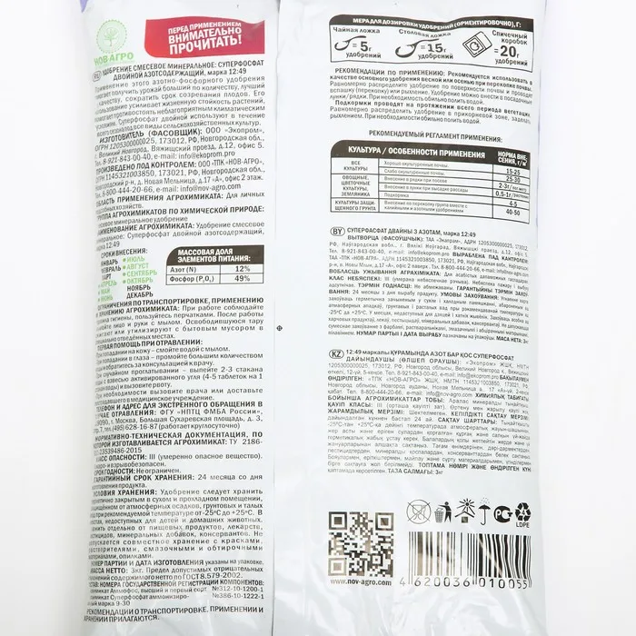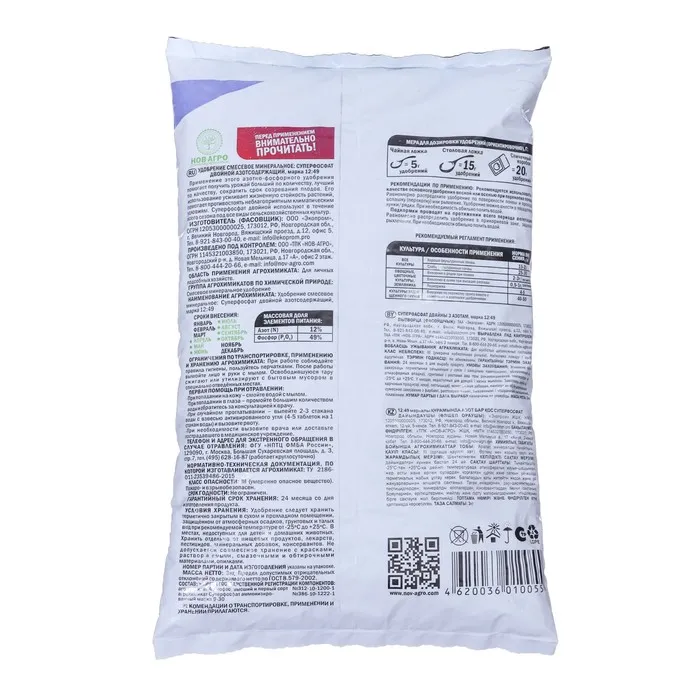 Удобрение минеральное Суперфосфат двойной азотсодержащий, 3 кг — Характеристики