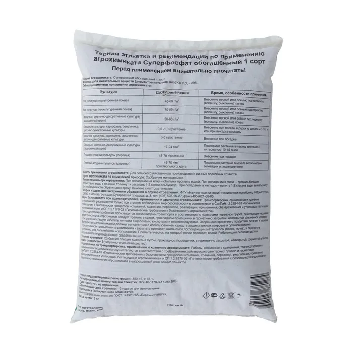 Удобрение минеральное Суперфосфат обогащенный, 3 кг — Характеристики