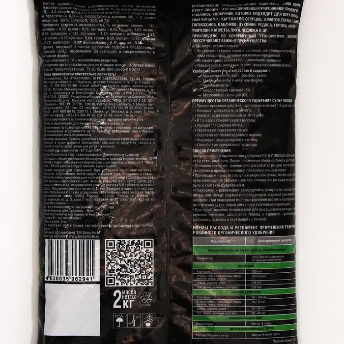Высококонцентрированное органическое удобрение. Подходит для всех видов растений сада и огорода: плодовых деревьев и кустарников, овощей и декоративных растений, цветов, рассады.
