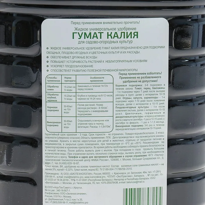 Удобрение органическое Гумат калия, 3 л — Характеристики