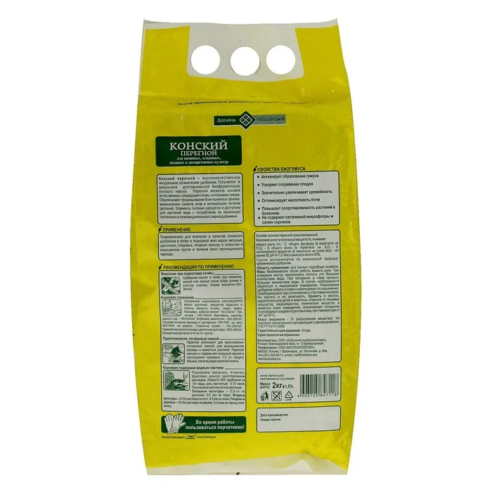 Удобрение органическое Конский перегной Долина плодородия, гранулинованное, 2 кг — Характеристики