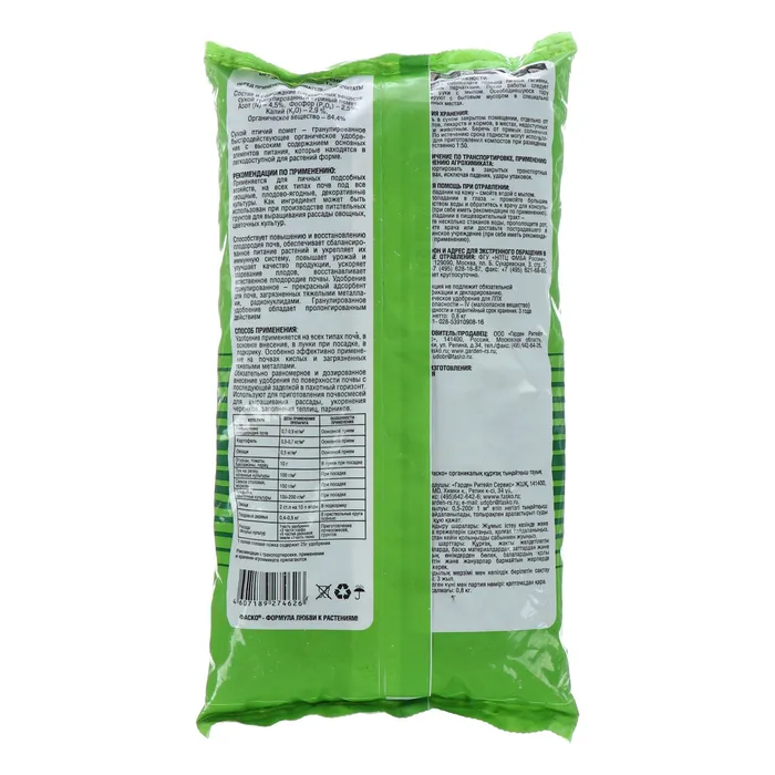 Удобрение органическое сухое Фаско, Куриный помет, 0,8 кг — Характеристики