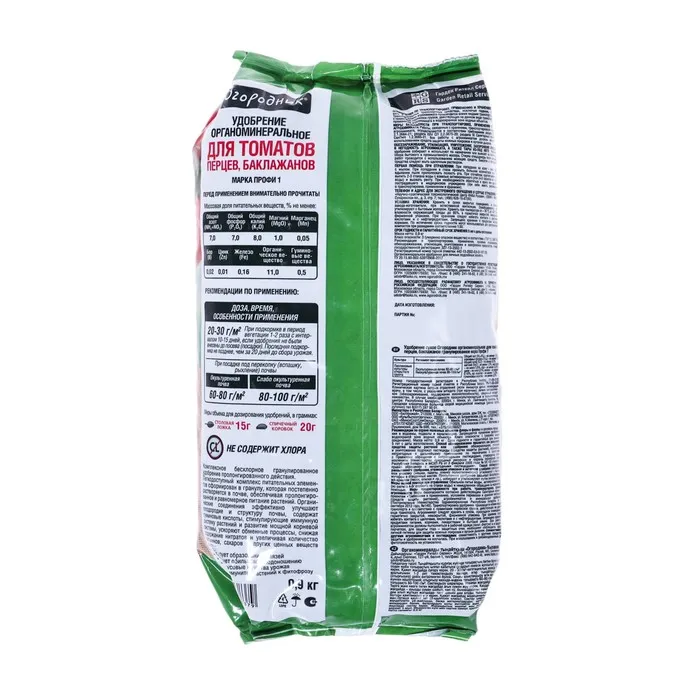 Удобрение органоминеральное "Для Томатов" гранулированное от бренда "Огородник" представляет собой специально разработанную формулу, которая обеспечивает оптимальный рост и развитие томатов. Это удобрение содержит балансированное сочетание органических и минеральных компонентов, необходимых для здорового и обильного урожая томатов. Вес упаковки составляет 0,9 кг, что делает его удобным в использовании для домашних огородов и малых приусадебных участков.