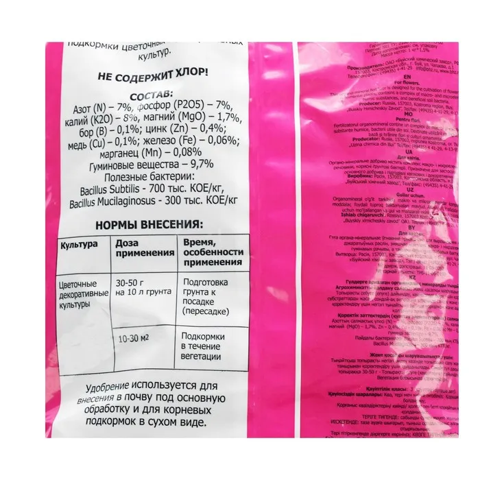 Удобрение органоминеральное для цветов, 1 кг — Характеристики