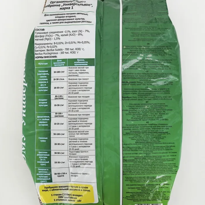 Удобрение органоминеральное "Универсал", 3 кг — Характеристики
