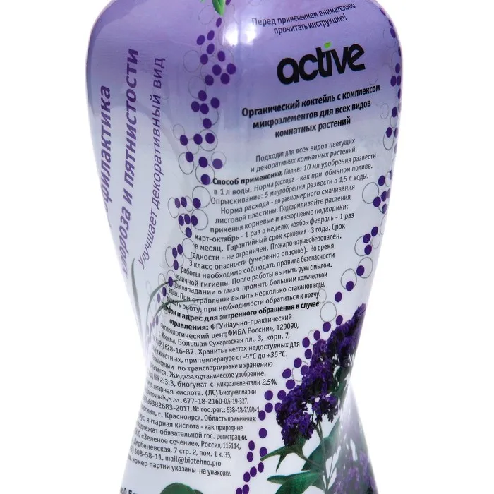 Удобрение органоминеральный коктейль Active Цветочное, для всех комнатных растений, 0,5 л — Характеристики