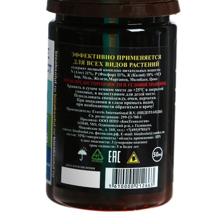 Формула NPK: N (Азот) 11%, P (Фосфор) 11%, К (Калий) 18% +МЭ.