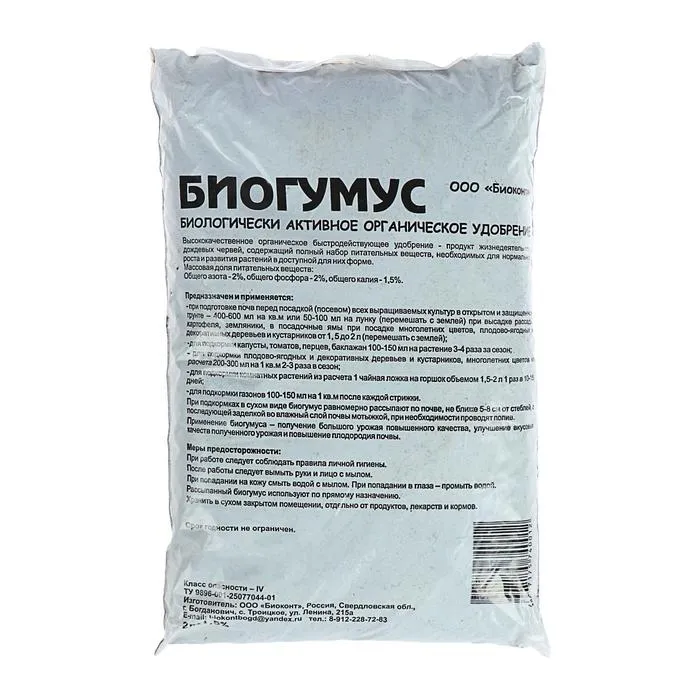 В заключение можно сказать, что удобрение ""Усадьба"" Биогумус является отличным выбором для тех, кто заботится о здоровье своих растений и окружающей среды. Оно обеспечивает растениям все необходимые питательные вещества, улучшает качество почвы и имеет длительный эффект. Рекомендуем это удобрение для использования в любом саду или огороде.