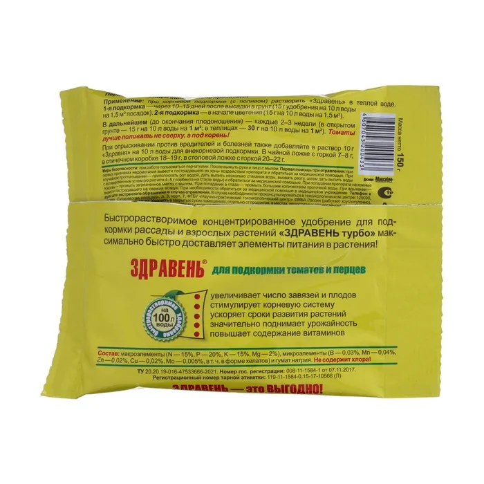 Удобрение Здравень турбо для подкормки томатов и перцев, 150 г — Характеристики