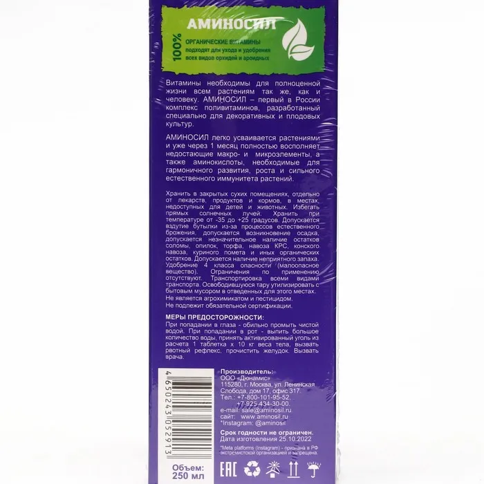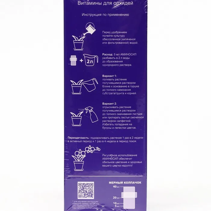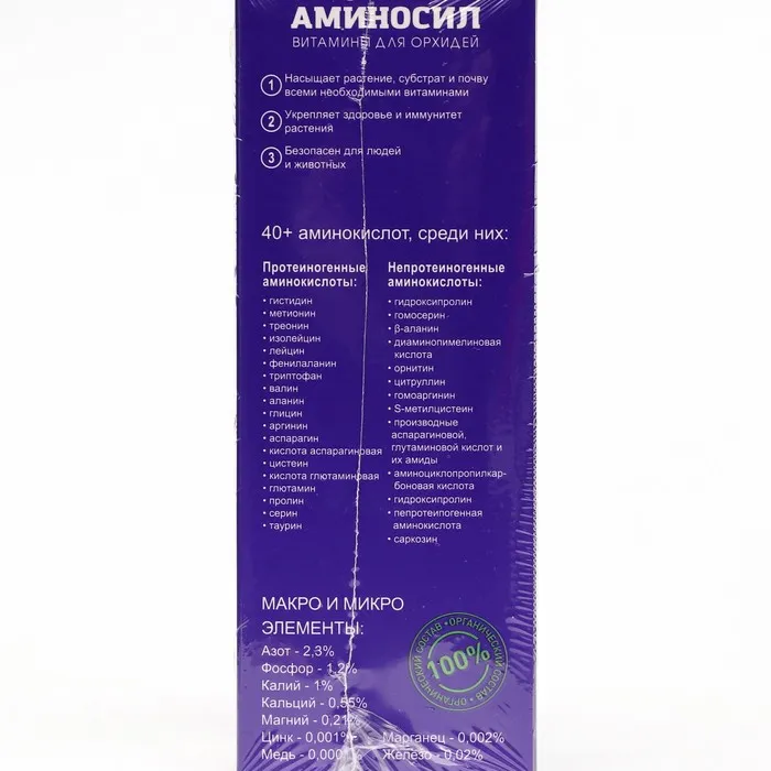 Аминосил выполняет для орхидей ту же функцию, что и традиционные витамины для человека, позволяя жить полноценной здоровой жизнью даже при стрессовых ситуациях. Благодаря микро и макро-элементам органического происхождения Аминосил дарит орхидеям длительное и интенсивное цветение, а так же обеспечивает качественный рост и развитие растения. Витамины Аминосил принимают активное участие в процессе метаболизма растений. По сути, они представляют собой элементы или кирпичики, благодаря которыми происходит строительство растительных клеток. Дозировка: всего 5 мл на 1л воды.