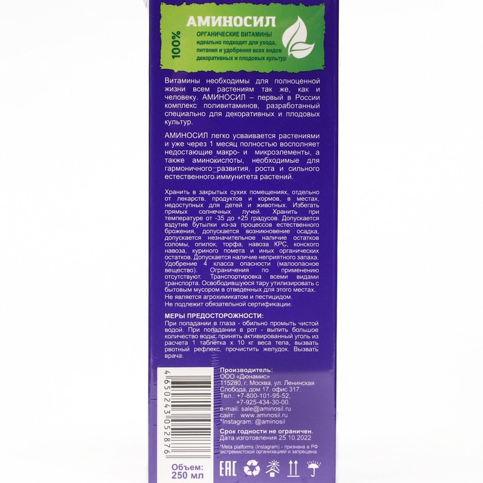 Удобрение жидкое Аминосил Универсальный, 250 мл — Характеристики