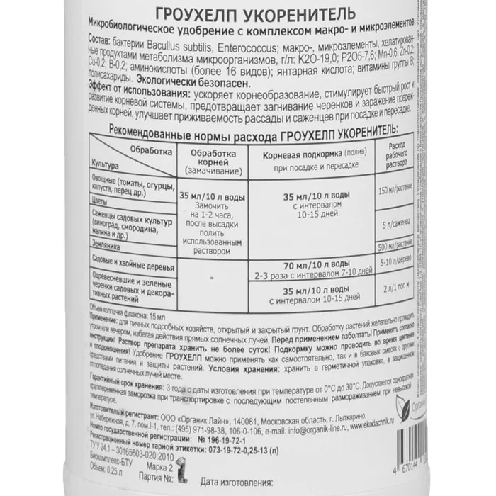 Жидкое удобрение "ГРОУХЕЛП" предназначено для удобрения овощных культур и содержит все необходимые элементы для их роста и развития..