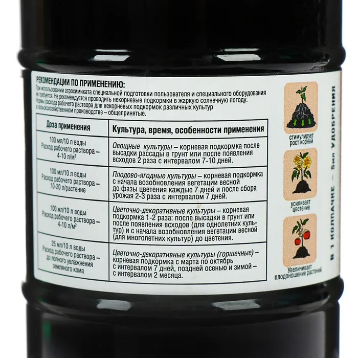 - Применение: для подкормок овощных, плодовых, ягодных и комнатных растения.
