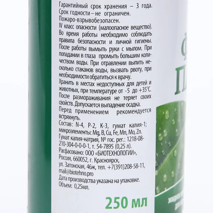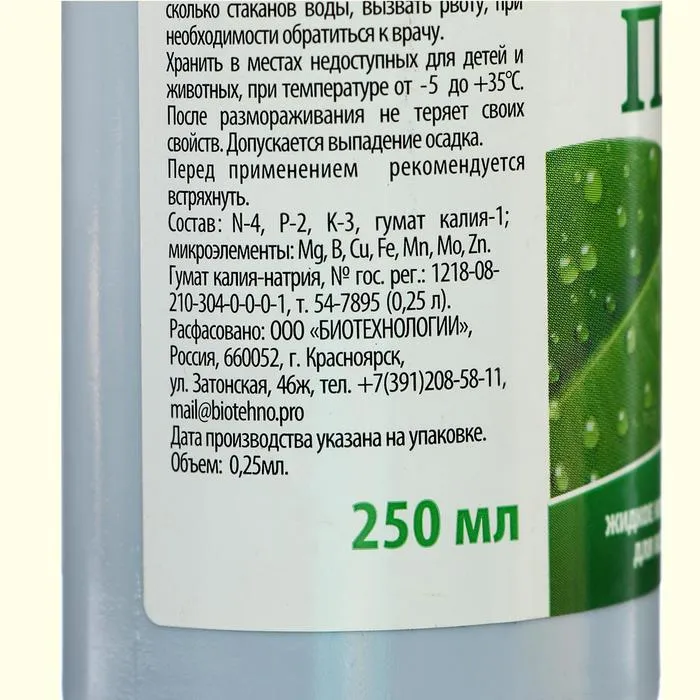 Удобрение жидкое органоминеральное ПАЛЬМА-ФИКУС для комнатных растений, 0,25 л — Характеристики