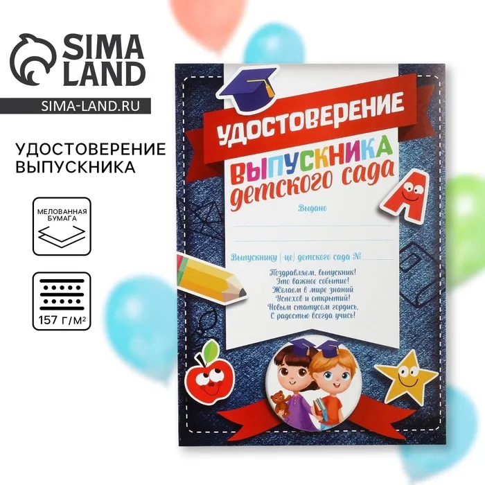 Удостоверение на Выпускной «Выпускника детского сада», А5, 157 гр/кв.м — Характеристики