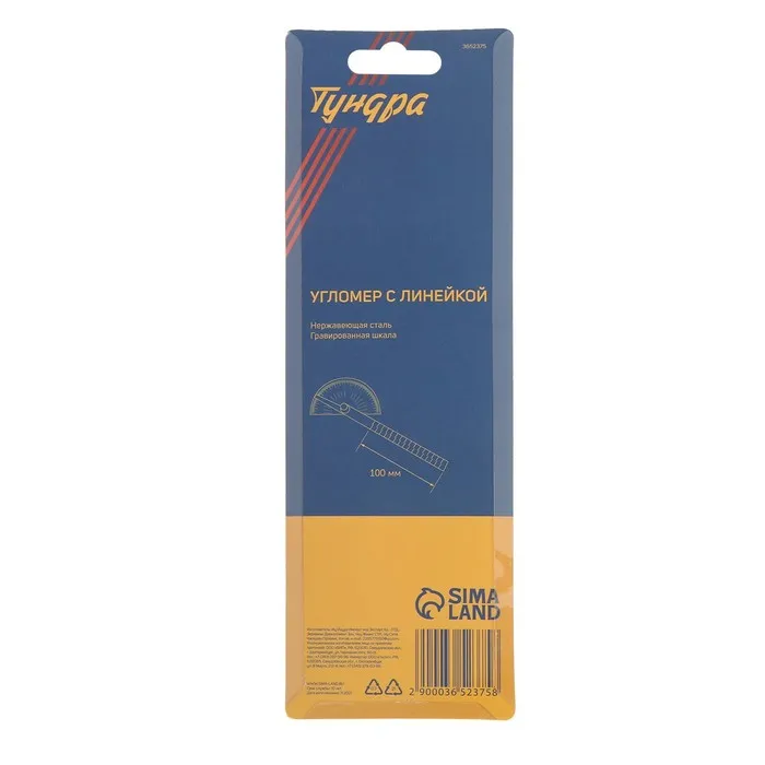 Угломер с линейкой ТУНДРА, нержавеющая сталь, гравировка, 100 мм — Характеристики