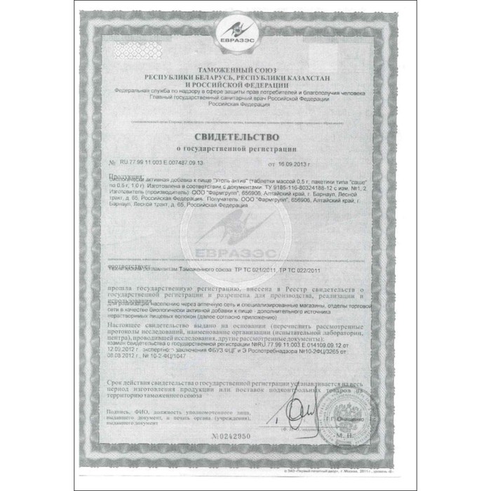 Состав: Целлюлоза микрокристаллическая (носитель), уголь активированный.
