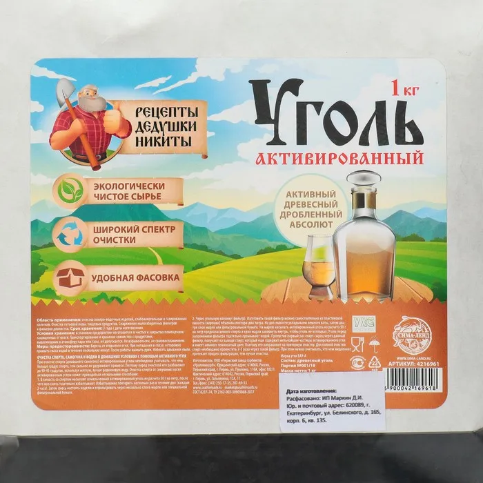 Уголь активированный Абсолют "Рецепты дедушки Никиты" 1 кг. — Характеристики