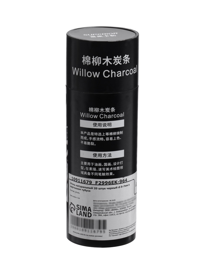 Уголь натуральный 20 штук, d=5-7 мм, в картонном тубусе, черный — Характеристики