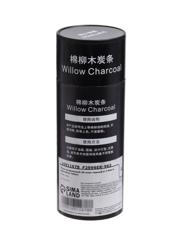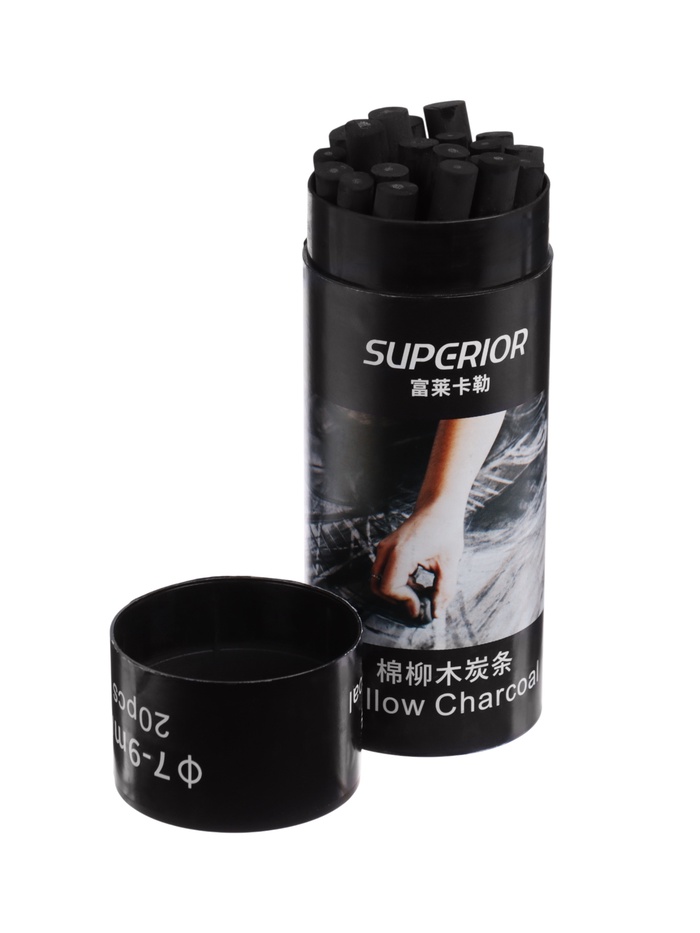 Уголь натуральный 20 штук, d=7-9 мм, в картонном тубусе, черный — Характеристики