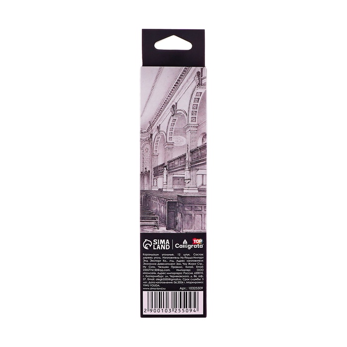Уголь прессованный для рисования, чёрный, 6 штук в наборе (мягкий, средний, твёрдый)