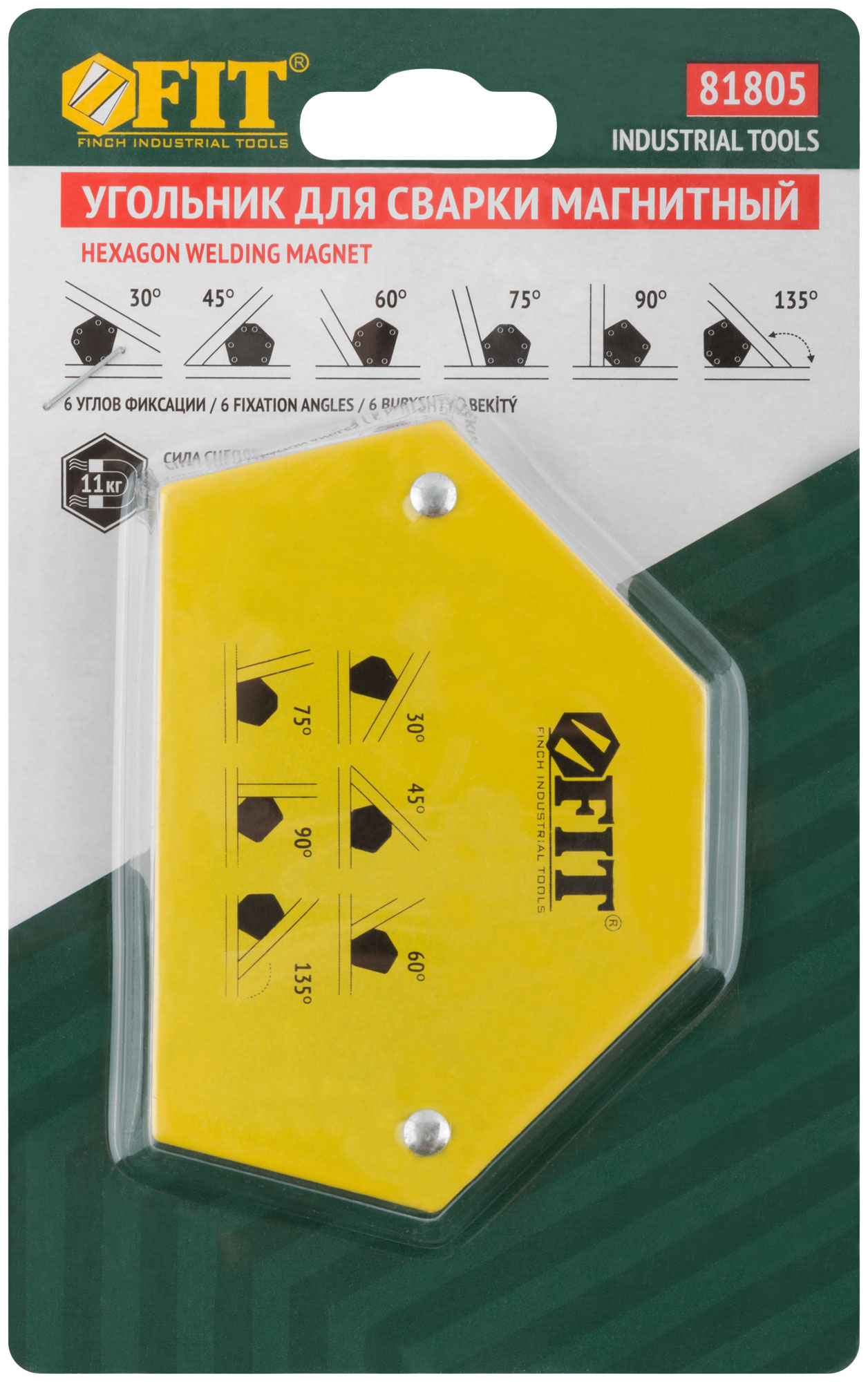 Используйте угольник для сварки FIT для надёжной фиксации металлических деталей при сварке, пайке и сборке конструкций. Благодаря его форме и магнитным свойствам, он удерживает элементы под различными углами, такими как 30°, 45°, 60°, 75°, 90° и 135°.