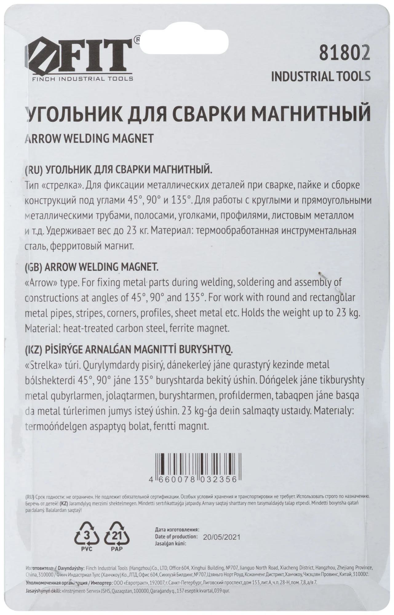 Угольник для сварки магнитный типа "стрелка" от FIT — это незаменимый помощник для фиксации металлических деталей при сварке, пайке и сборке конструкций. Он позволяет легко удерживать материалы под углами 45°, 90° и 135°, что делает его идеальным для создания сложных конструкций.