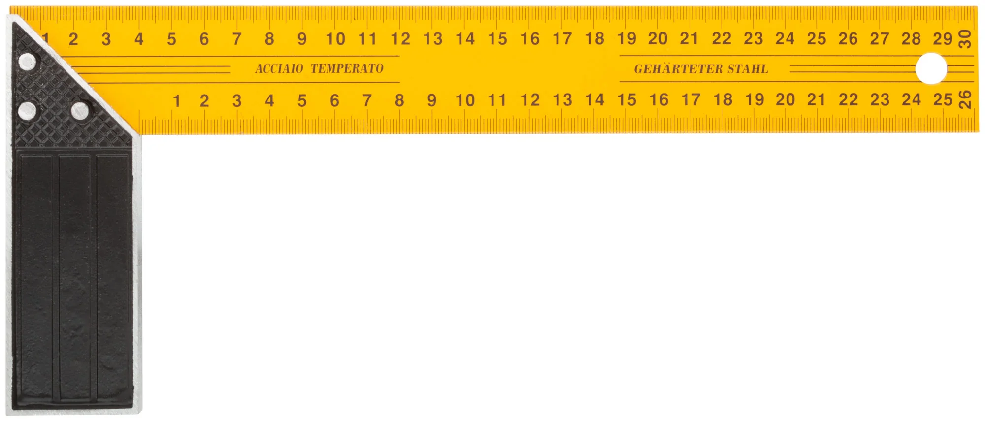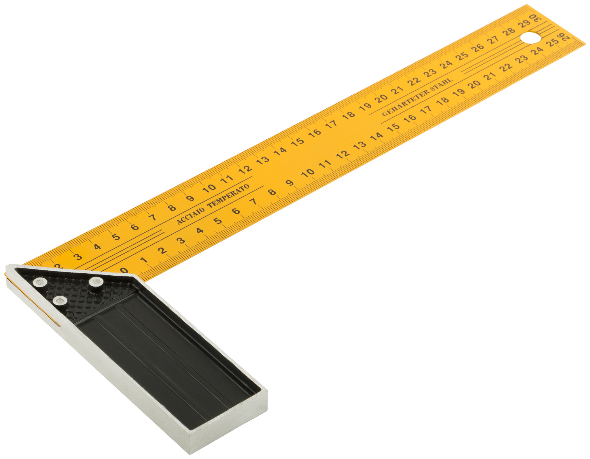 Преимущество данной модели заключается в её усиленной конструкции, которая делает угольник устойчивым к деформациям и повреждениям в процессе эксплуатации. Яркий желтый цвет помогает быстро находить инструмент среди других.