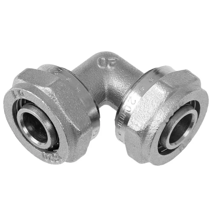 Никелированный уголок обжимной AQuapex предназначен для соединения металлопластиковых труб – трубопровод от основной линии.