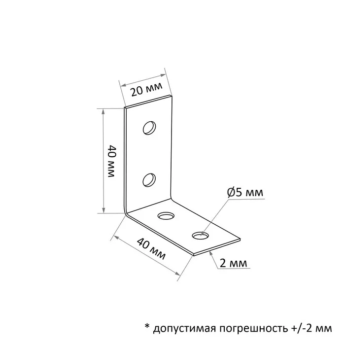 Уголок крепежный равносторонний ТУНДРА krep, 40х40х20х2 мм, в упаковке 200 шт. — Характеристики