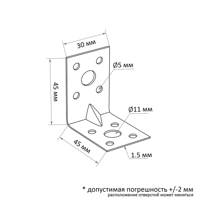 Уголок крепежный усиленный ТУНДРА krep, 45×45×30×1.5 мм, в упаковке 100 шт. — Характеристики