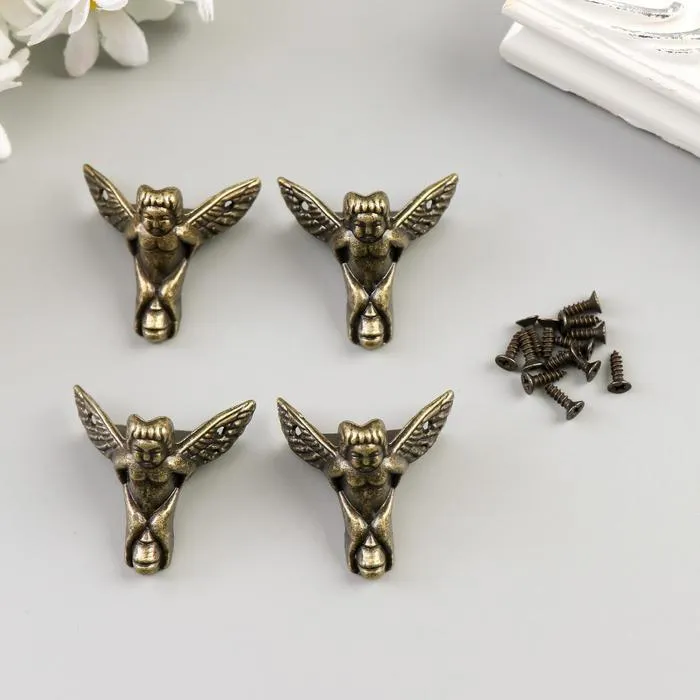 Уголок (ножка) для шкатулки металл "Ангел" набор 4 шт бронза 2,3х2,6х1 см