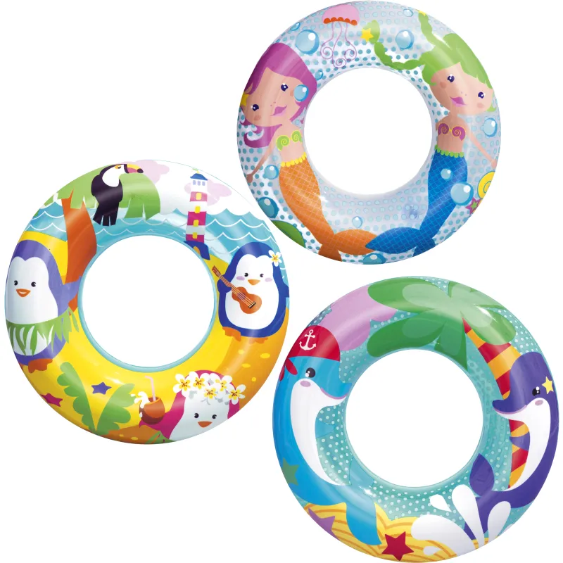 Плавательный круг Bestway имеет веселый и жизнерадостный дизайн. Легко надувается, сдувается и хранится!