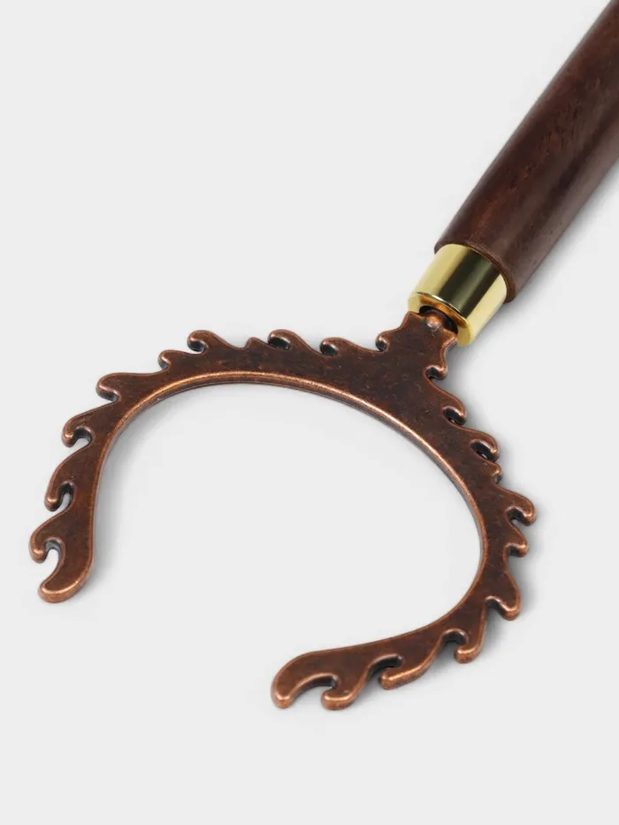 Элегантный ухват для пиалы, искусно изготовленный из натурального дерева и прочного цинкового сплава. Предназначен для удобного и безопасного обращения с горячими пиалами во время китайской чайной церемонии. Длина: 18 см. Обеспечивает надежный захват и защищает руки от ожогов.