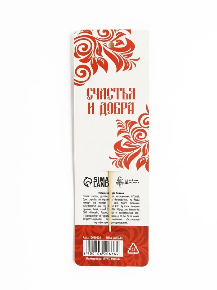 Украшение для блинов на масленицу «Матрешка», 6×19 см — Характеристики