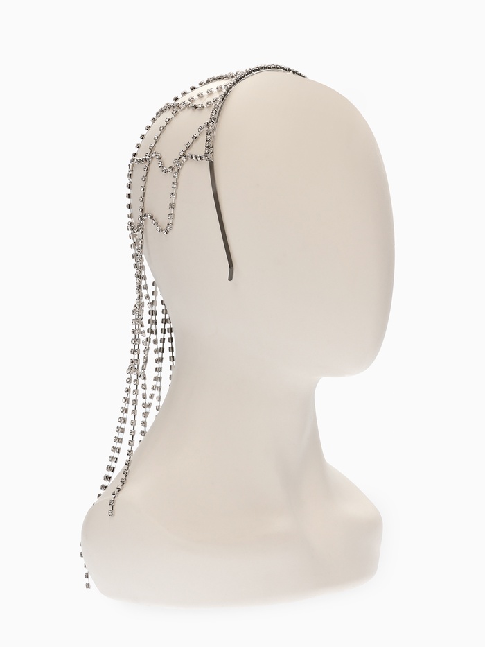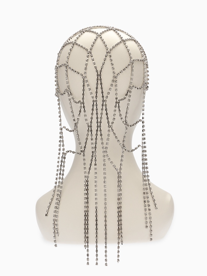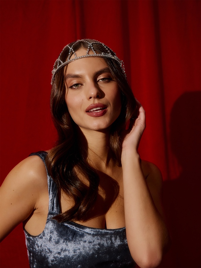 Приоткрываем завесу тайны и представляем необычное украшение для волос, наполненное атмосферой сказки и мистики — серебряная паутинка длиной 44 сантиметра подарит образу чарующее свечение и оригинальность.