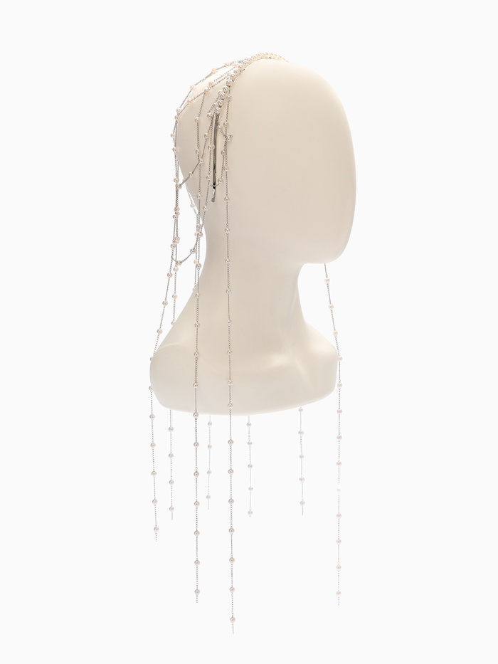 - Преобразующая сила: серебристые нити, инкрустированные мелкими жемчужинами, добавляют визуального объема и глубины, освежают внешность и придают образу мягкого аристократизма.