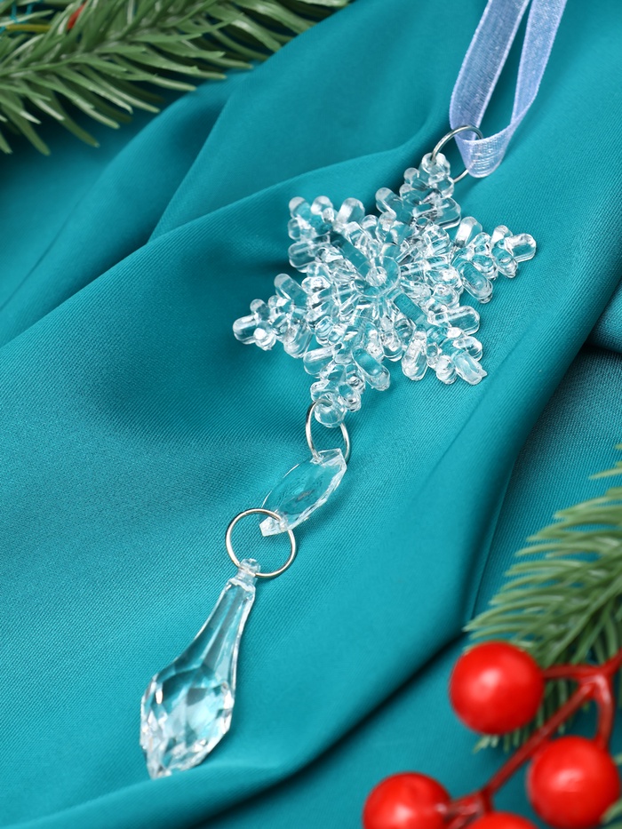 Украшение ёлочное "Льдинка" снежинка капелька, 13х4,5 см, прозрачный — Характеристики