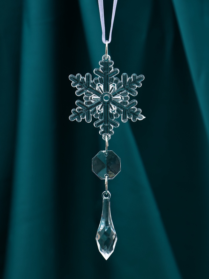 Украшение ёлочное "Льдинка" снежинка капелька, 13х4,5 см, прозрачный